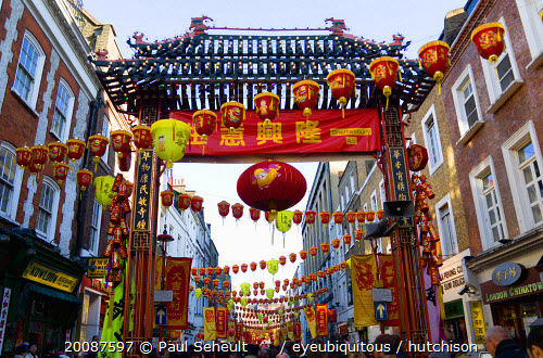 Lion Dance troupe in Gerrard Street with their lions before performing through the area during Chinese New Year celebrations in 2006 for the coming Year of The Dog