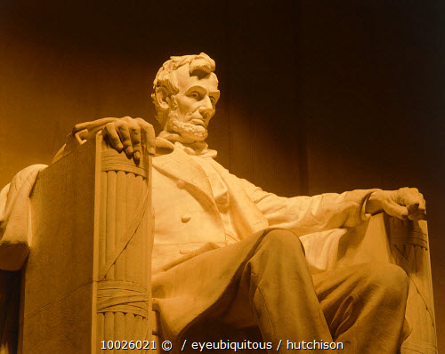 The Lincoln Memorial with the illuminated statue of Abraham Lincoln seated