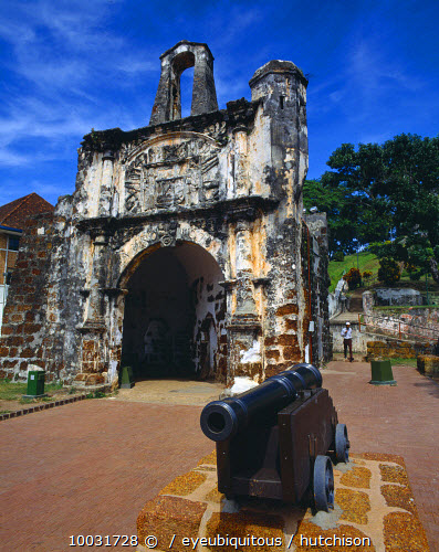 Porto de Santiago ruined gateway and cannon of Portuguese fort.