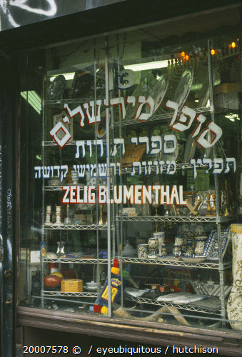 Lower East Side Jewish Quarter. Shop front with Jewish name painted across the window.