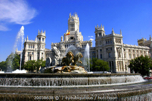 Plaza de Cibeles fountain with the post office facade behind