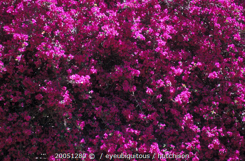 Close up of a Bougainvillea plant with purple pink flowers