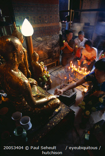 Wat Pho small shrine beside the reclining Buddha with devotees making offerings to small Golden BuddhasAsian Prathet Thai Raja Anachakra Thai Religion Siam Southeast Asia Religious Siamese
