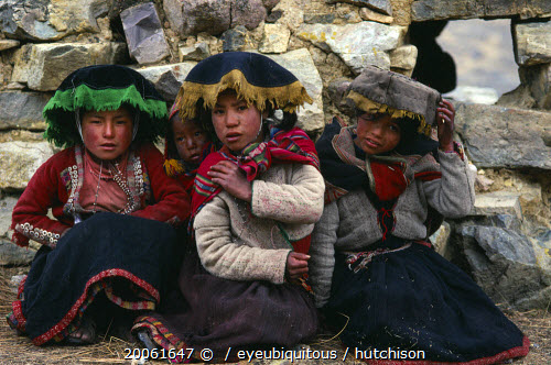 Portrait of three young girls from Pacchanta at the foot of Nevado Auzangate. Cuzco
