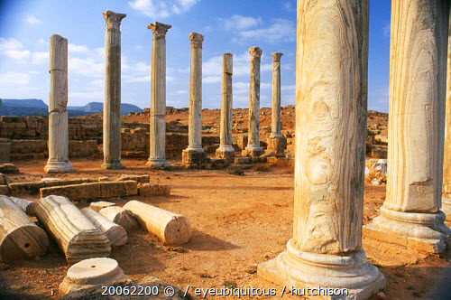 Ancient harbour of Cyrene and a city in its own right. Colonnade and fallen masonry.