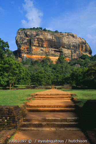 View along path toward huge monolithic rock site of fifth century citadel. Also called Lion Rock.