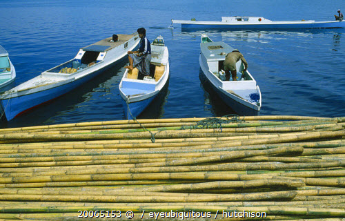 Men on boats docking in port with Bamboo at dockside.