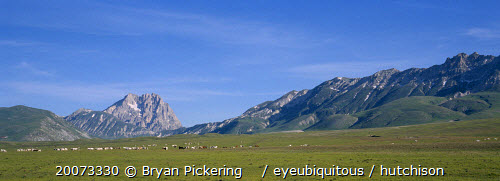 Campo Imporatore. A vast high plateau used for horse cattle and sheep summer grazing.Cow Bovine Bos Taurus Livestock Equestrian European Italia Italian Scenic Southern Europe