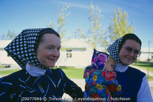 Hutterite women and child from the Milford farming colony near Raymond. Hutterites are a communal branch of Anabaptists forming male dominated rural colonies.