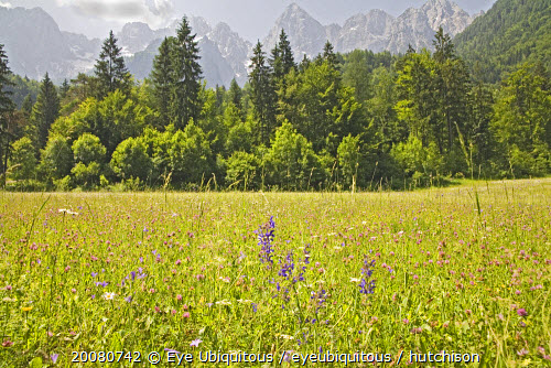 A lovely uncut spring hay meadow in the wide Alpine Valley in the shadow of the Julian Mountains NaturalunspoiltJulian Mountain Rangespring flowersalpine flowers