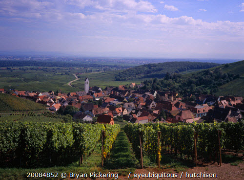 Katzenthal. View through Vineyards towards village European French Western Europe Scenic Farming Agraian Agricultural Growing Husbandry Land Producing Raising