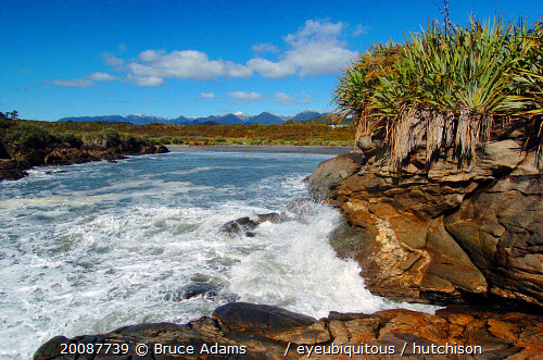 CONSTANT BAY CHARLESTON ON THE WEST COAST OF NEW ZEALANDS SOUTH ISLAND LOOKING EAST TOWARDS THE PAPAROA NATIONAL PARK AND ST ARNAUD MOUNTAIN RANGE.Antipodean Oceania Scenic