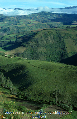 Elevated view across tundra region with green hills valleys and agricultural terracingAmerican Equador Hispanic Latin America Latino Scenic South America Ecuador