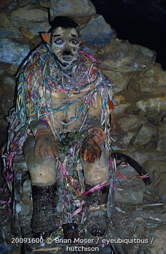 Siglo XX Tin Mine. Tio The God Who Protects the Miners. Miners give Tio offerings of coca leaves and cigarettesAmerican Bolivian Hispanic History Latin America Latino Religion South America
