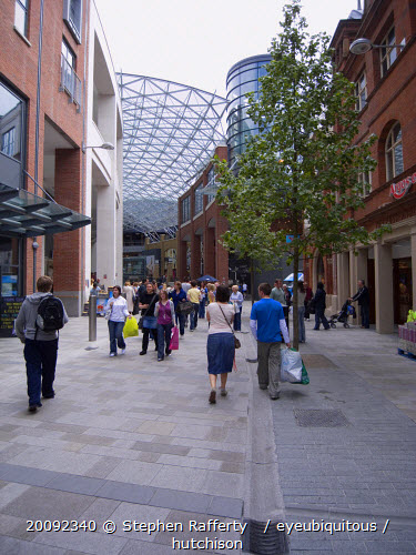 Entrance to Victoria Square shopping mall from Corn Market and William Street.BŽal Feirste Eire European Irish Northern Europe Republic Ireland Poblacht na hƒireann Shopping Centre