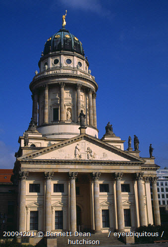Franzosischer Dom in the Gendarmenmarkt built by the Huguenot community 1701-1705. Exterior with steps to entrance and domed roof with statues. French CathedralCalvinistEighteenth Century 18th c. Deutschland European Religion Religious Western Europe History