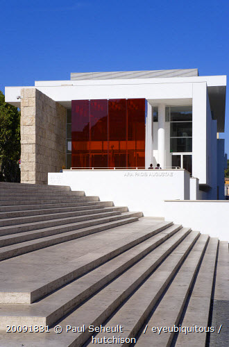 Steps leading to the Ara Pacis The Altar of Peace a monument from 13 BC celebrating the peace created in the Mediteranean by Emperor Augustus after his victorious campaigns in Gaul and SpainEuropean Italia Italian Roma Southern Europe Espainia Espana Espanha Espanya Gray Hispanic History Learning Lessons Spanish Teaching