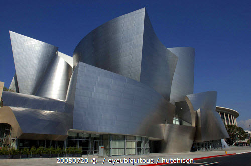 The Walt Disney Concert Hall modern silver exterior designed by Frank Gehry