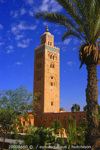 Koutoubia Mosque minaret with palms in the foreground