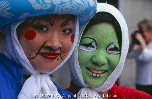 Harajuku District. Portrait of two smiling girls wearing face paint