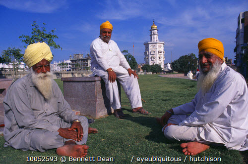 Golden Temple. Three elderly Sikh men sitting outside the temple complex.3 Asia Asian Bharat Inde Indian Intiya Male Man Guy Old Senior Aged Religion Religion Religious Sihism Sikhs