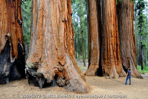 Sequoia tree trunks with figureNorth America United States of America American National Park Northern The Golden State North America United States of America American National Park Northern The Golden State