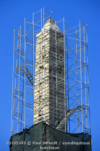 Turkey, Istanbul, Sultanahmet, The Roman Hippodrome in At Meydani with the Brazen Column or Column of Constantine Porphyrogenitus under repair with scaffolding.